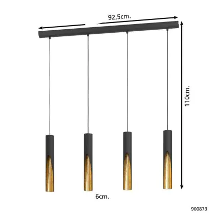 Eglo Luce Pendente Barbotto Acciaio Nero, Oro 18W 1380lm - 830 Luce Calda - | Adatto per GU10