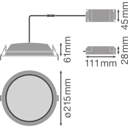 Descrizione Ledvance Downlight LED Alu DN200 25W 2250lm 100D - 830 Luce Calda | 215mm - IP44 - Dali Dimmerabile