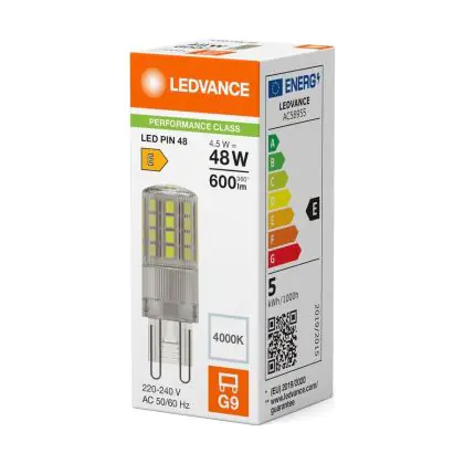 Puoi risparmiare fino al 80% di energia e mantenere i costi di manutenzione veramente al minimo, grazie al minimo consumo di soli 4.5W e una durata della vita media utile di 15000 ore. Le tradizionali lampade alogene G9 hanno una durata di sole 2000 ore. Le lampade LED inoltre non emettono raggi IR e UV che sono dannosi e non produce calore! Installare questa lampada è veramente facile: spingi la vecchia lampada G9 fuori dall’attacco quando si è raffreddata, metti la nuova lampada G9 nell’attacco. Questo prodotto ha un alta qualità Ledvance e disponibile a partire da . Puoi usare questo prodotto senza aver nessun pensiero grazie al nostro Lampadadiretta.it garanzia totale di 3 anni.