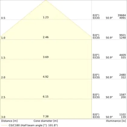 L'apertura del fascio luminoso indica l'angolo del fascio di luce proveniente da una lampada o lampadina. Si misura in gradi (D) e più piccolo è l'angolo, più piccola è l'apertura del fascio di luce.