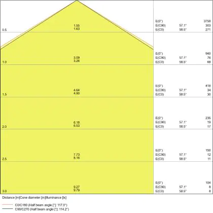 L'apertura del fascio luminoso indica l'angolo del fascio di luce proveniente da una lampada o lampadina. Si misura in gradi (D) e più piccolo è l'angolo, più piccola è l'apertura del fascio di luce.