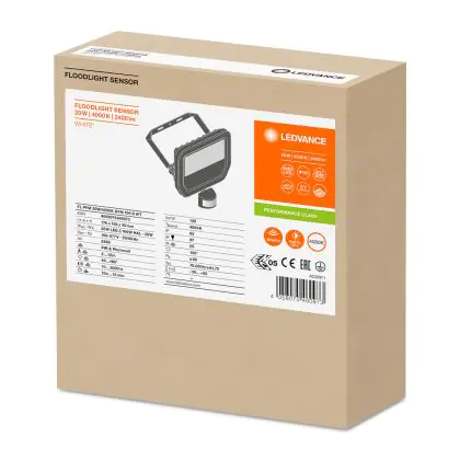 Descrizione Ledvance Proiettore LED Sensor GEN 3 Bianca 20W 2400lm 100D - 840 Bianco Freddo | IP65 - Sensore di movimento e luce - Simmetrico