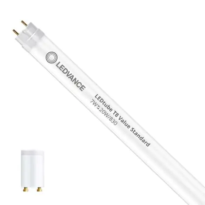 Il Ledvance Tubo LED T8 Value (EM/Mains) Standard Output 7W 765lm - 830 Luce Calda | 72cm - Sostitutiva 16W è l’alternativa perfetta per il tubo fluorescente standard 16W nelle plafoniere con un reattore. Con questo tubo LED hai una garanzia di una vita media utile molto lunga e 5 anni Lampadadiretta.it di totale garanzia. .