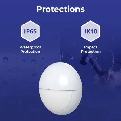 Un elemento importante delle plafoniere e delle applique LED è il loro livello di proezione IP, che indica la protezione contro l'ingresso di polvere e umidità/acqua. A partire da IP65, un apparecchio di illuminazione è a prova di polvere e acqua. Il valore IP di questa plafoniera LED è: IP65. Stai cercando una plafoniera LED per esterni? Allora presta attenzione alla protezione da urti e impatti, ovvero il valore IK, che per questa lampada è IK10 - 20 Joule.