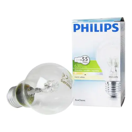 La Philips EcoClassic 42W E27 230V A55 CL é una lampadina alogena caratterizzata dalla tipica forma sferica delle tradizionali lampadine. E' un modello che offre un'accensione immediata ed una luce di qualità davvero brillante e di colore bianco caldo. La Philips EcoClassic 42W E27 230V A55 CL ha una vita utile di 2.000 ore, il doppio di unna normale lampadina alogena! Inoltre, questa lampadina offre anche la pssibilità di dimmerare l'intensità della luce, cosí da creare un'atmosfera perfetta in ogni situazione.
